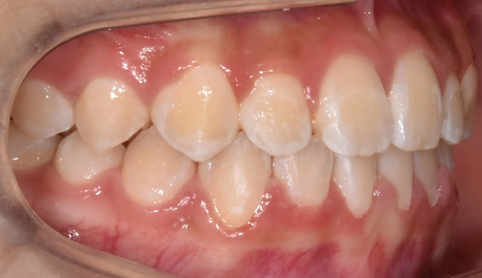 반대교합과 함께 안모 엑스레이 분석시 주걱턱 경향이 심하여 성장교정을 진행했습니다.