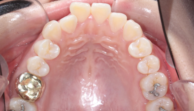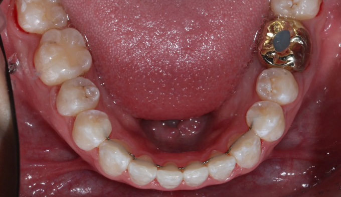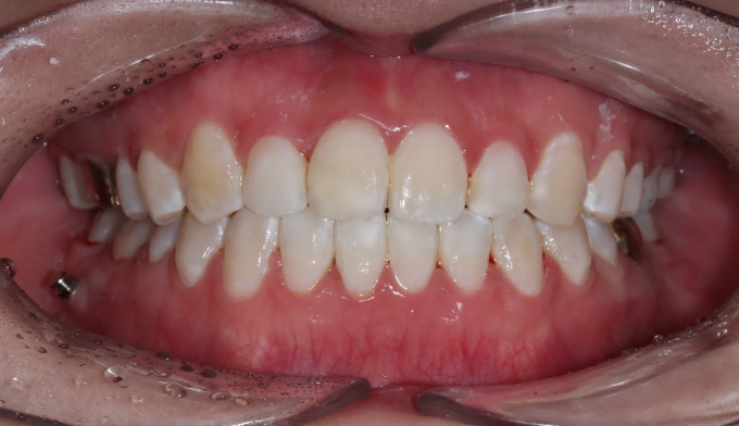 치아교정이 진행되면서 구강위생관리가 좋지않아 잇몸 염증과 초기 충치가 다수 관찰되었습니다.