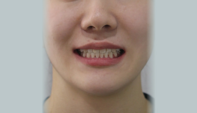 미니스크류를 이용하여 어금니 교합을 변화시켜 개방교합을 해소하였습니다. 이와 동시에 어금니의 후상방 이동으로 앞니 배열공간을 만들었고 앞니를 가지런하게 배열시킬 수 있었습니다.