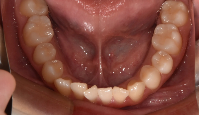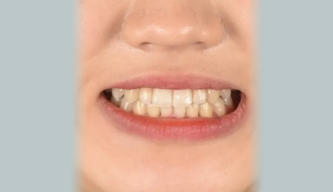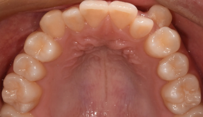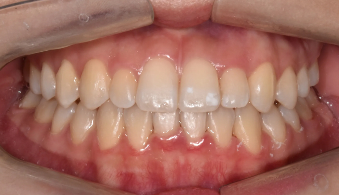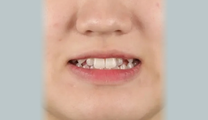 덧니뿐만 아니라 앞니의 교합이 좋지 않아 윗니가 아랫니를 덮지 못하는 개방교합도 동시에 나타납니다.