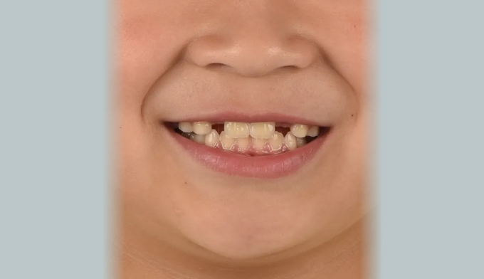 4개월간의 장치 착용으로 앞니가 정상적인 교합으로 형성되었고 이와 더불어 안모도 개선되었습니다.