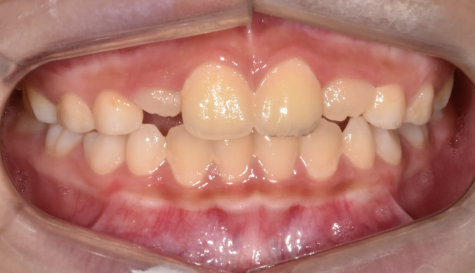 이런 경우 간단한 근기능장치 교정으로 앞니교합을 정상으로 만들어줄 수 있습니다.