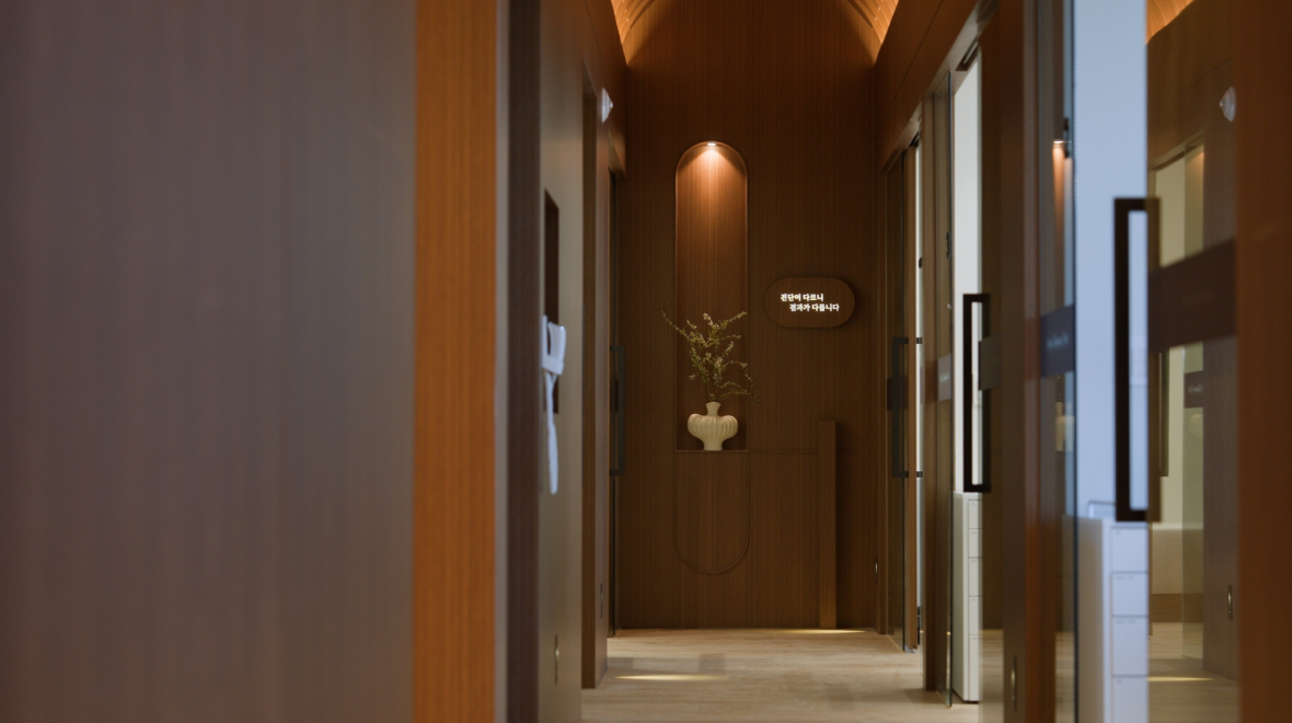 나무 무늬의 벽과 바닥을 활용해 심리적 안정감을 주는 공간으로 디자인 하였고,